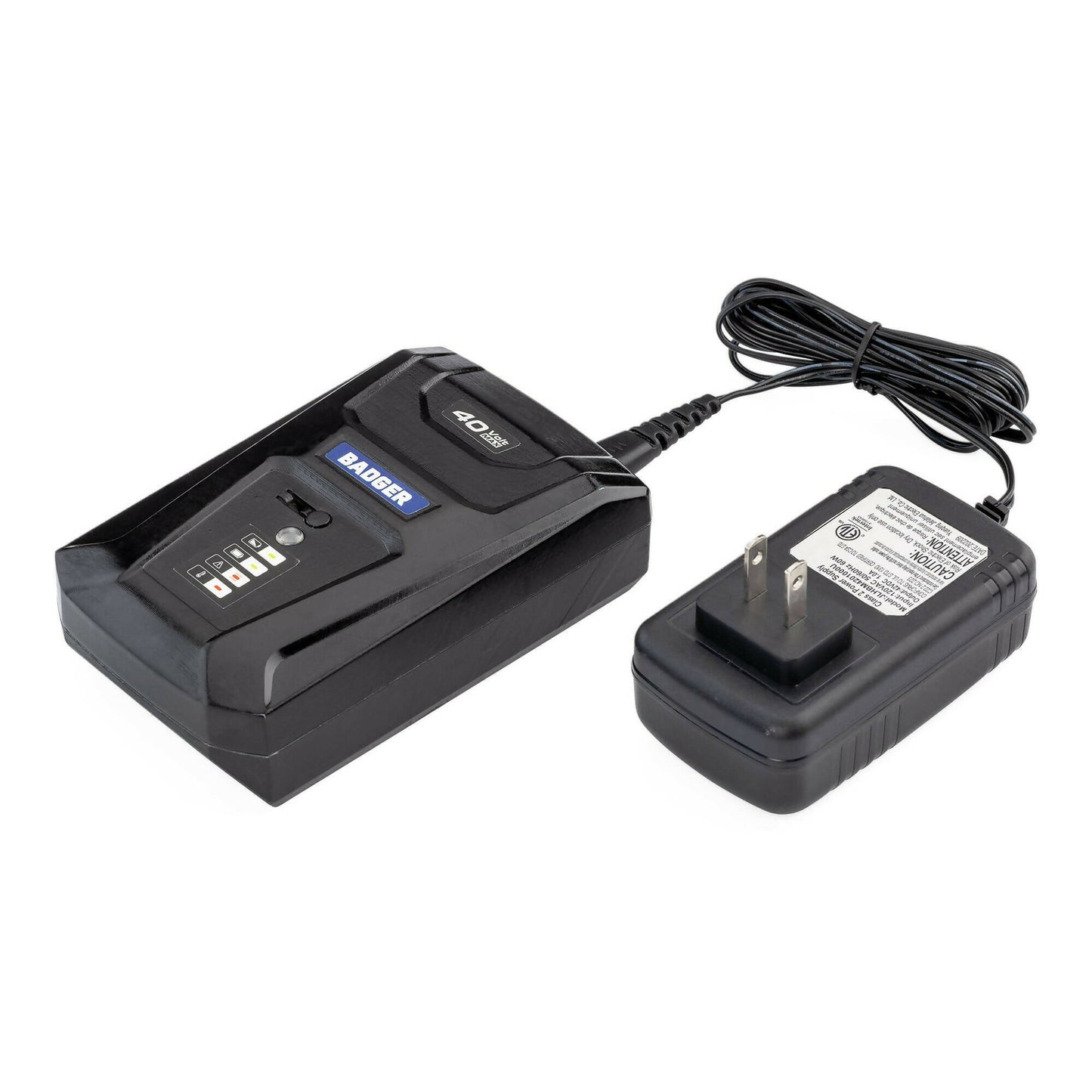 The Wild Badger Power 40 Volt 1A Clip-On Charger is designed to reduce wait time between use of your power tools. This charger recharges all Wild Badger Power 40 Volt batteries and can recharge 2.0Ah batteries in under 120 minutes getting you back to work quickly.