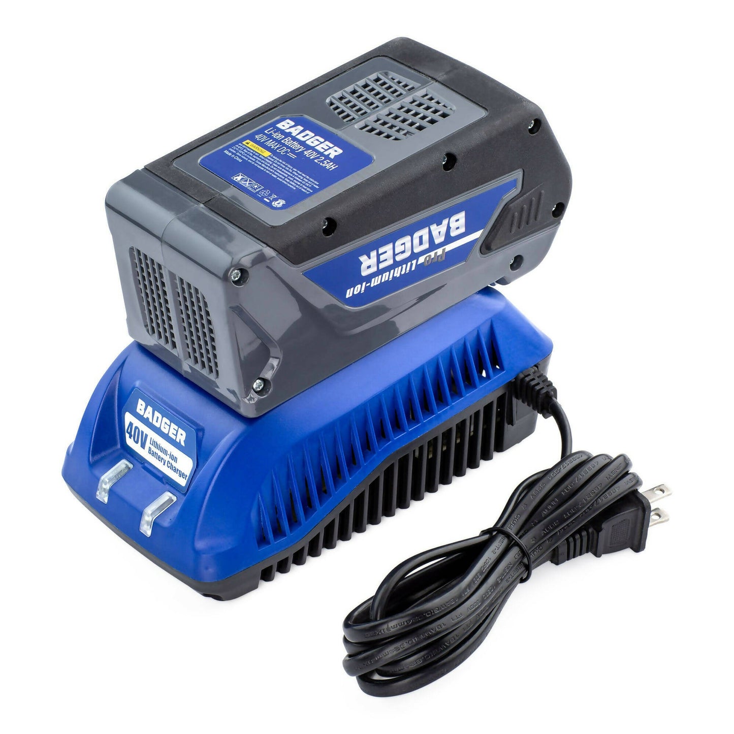 The Wild Badger Power 40 Volt 2.1A Fast Charger is designed to reduce wait time between use of your power tools. This charger recharges all Wild Badger Power 40 Volt batteries and can recharge 2.0Ah batteries in under 60 minutes getting you back to work quickly.