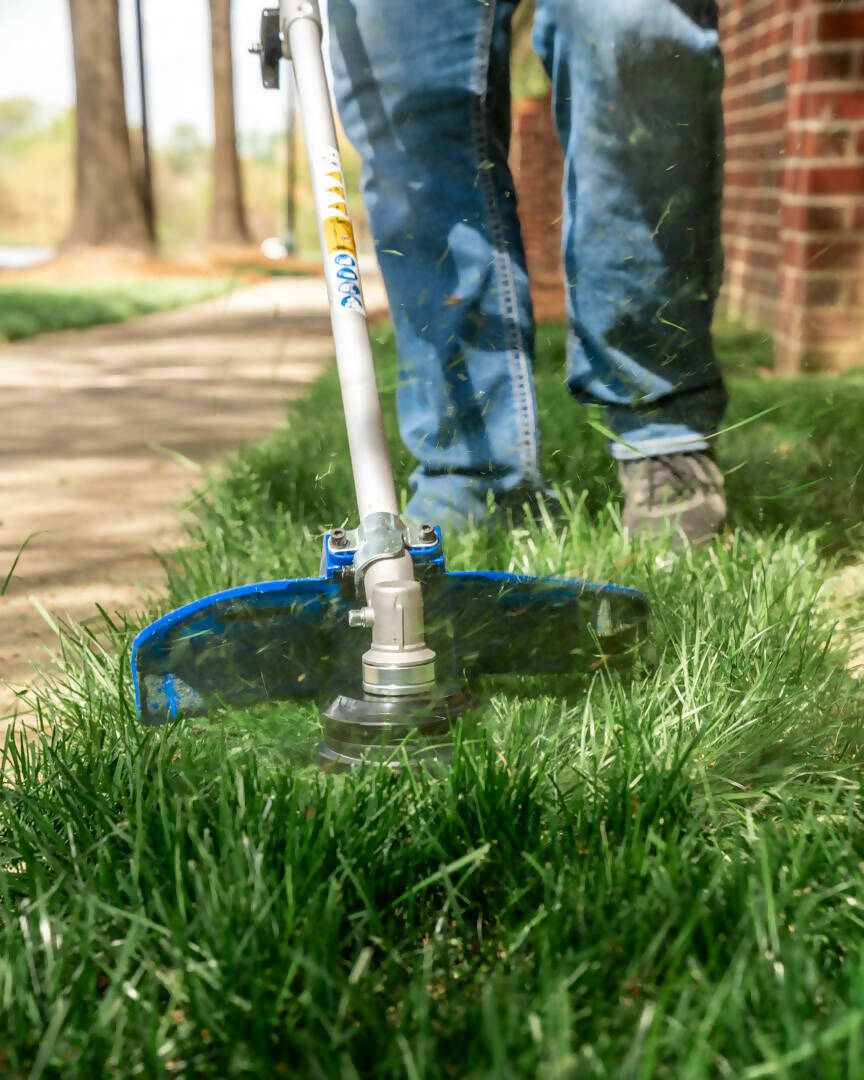 Stop mixing oil and gas and take control of your lawn care with the powerful and versatile Wild Badger Power 4-Cycle Straight Shaft 2-in-1 Grass Trimmer and Brush Cutter. This tool has a grass trimmer attachment for detail work along borders and a brush cutter blade for heavier grasses and brush clearing. It also includes a harness to relieve the strain on your arms and improve stability. Powered by a 31cc, 4-cycle, full-crank engine, your trimmer is designed for reliability. The full crank design delivers a fast start and smooth operation reducing emissions, increasing fuel efficiency and delivering longer life. The transmission is supported by an aluminum casing which greatly reduces vibration allowing you to work in comfort until the job is done. The straight shaft is built with a robust aluminum tube which is lightweight and durable for added comfort and convenience. The twist-n-load bump feed trimmer head allows for quick line feed for the twin line cutting system. Replacing the line will no longer eat up precious daylight and will give you more time to get your lawn and landscaping looking clean.
