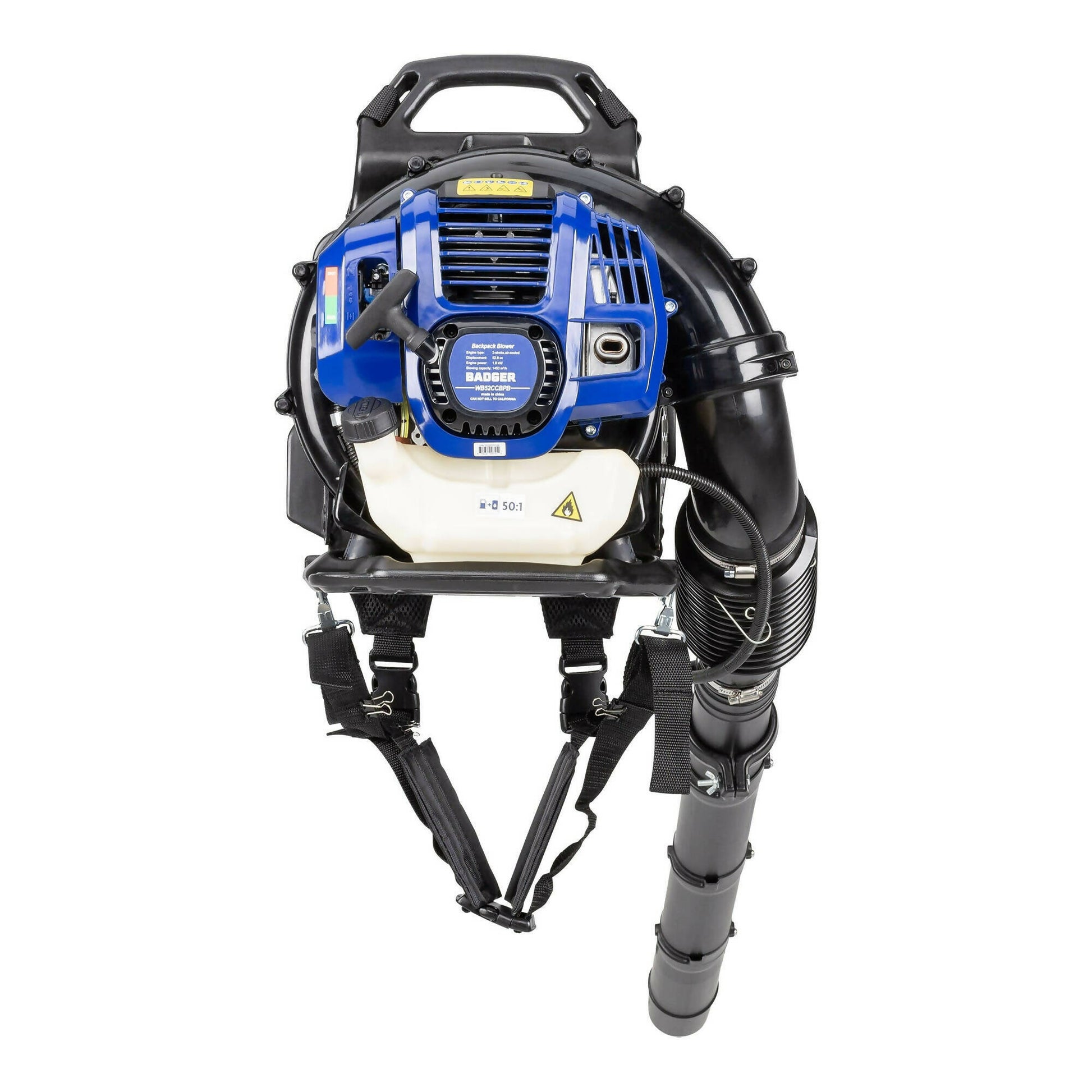 The Wild Badger Power 53cc backpack blower makes yard cleanup quick and easy. This blower delivers the best-in-class air power at 855 CFM and 175 MPH. The engine has a run time of over 200 hours. The 3-point spring anti-vibration, 90-degree rotating joystick controller, and tool-less air filter provides the best user experience over other blowers on the market. The ventilated backpack frame evenly distributes weight on the user and provides ventilation for better air circulation.