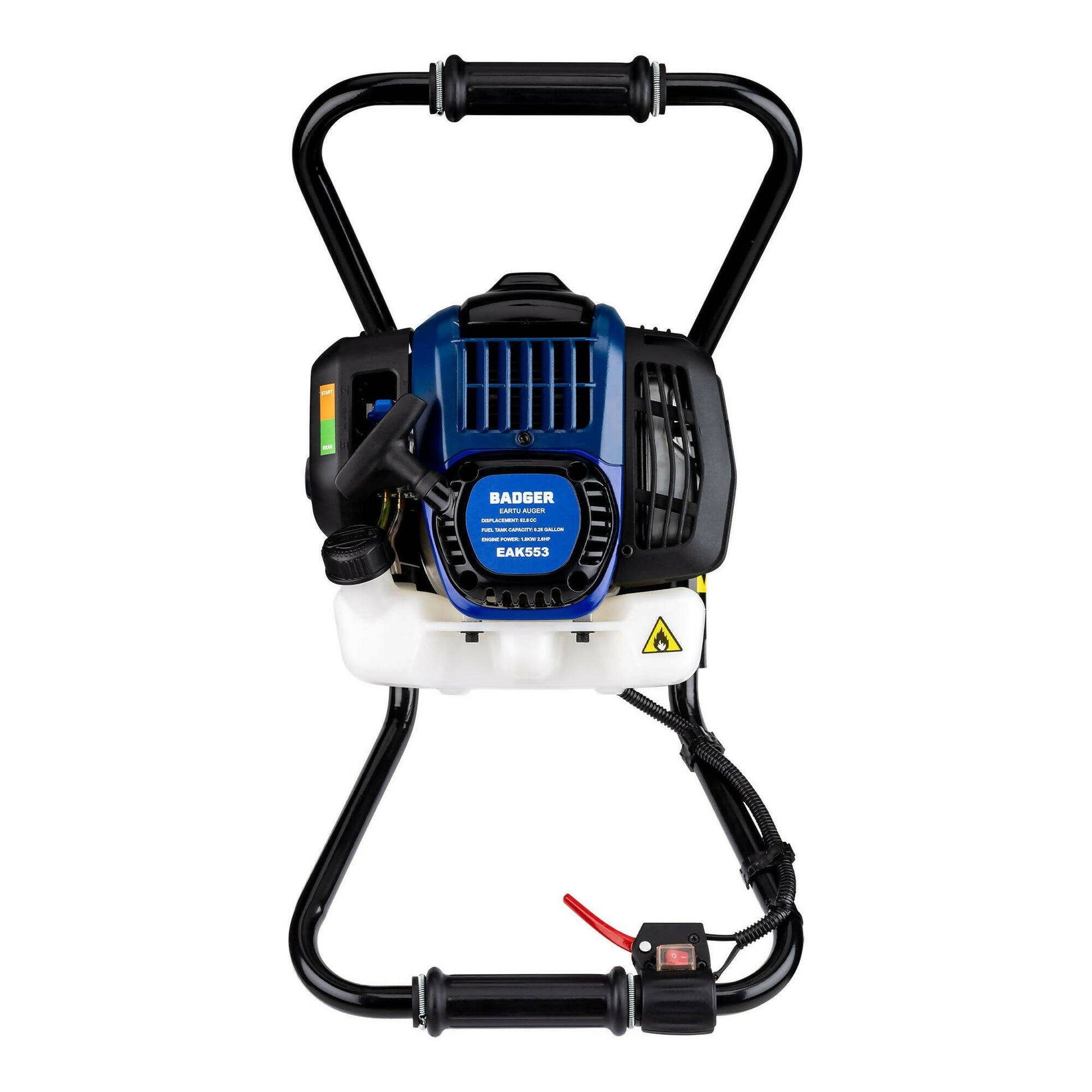 The Wild Badger Power Earth Auger dredges holes with an 8-inch diameter bit for posts or planting. The drill bit is 31.5 inches long and has replaceable blades to extend the life of the bit. It installs quickly, no tools needed. The 53cc, full crank, 2-cycle engine has been tested for 100+ hours and has an anti-vibration spring for added user convenience. Wild Badger Power also offers 6-inch (WBEA6) and 10-inch (WBEA10) drill bits (sold separately).