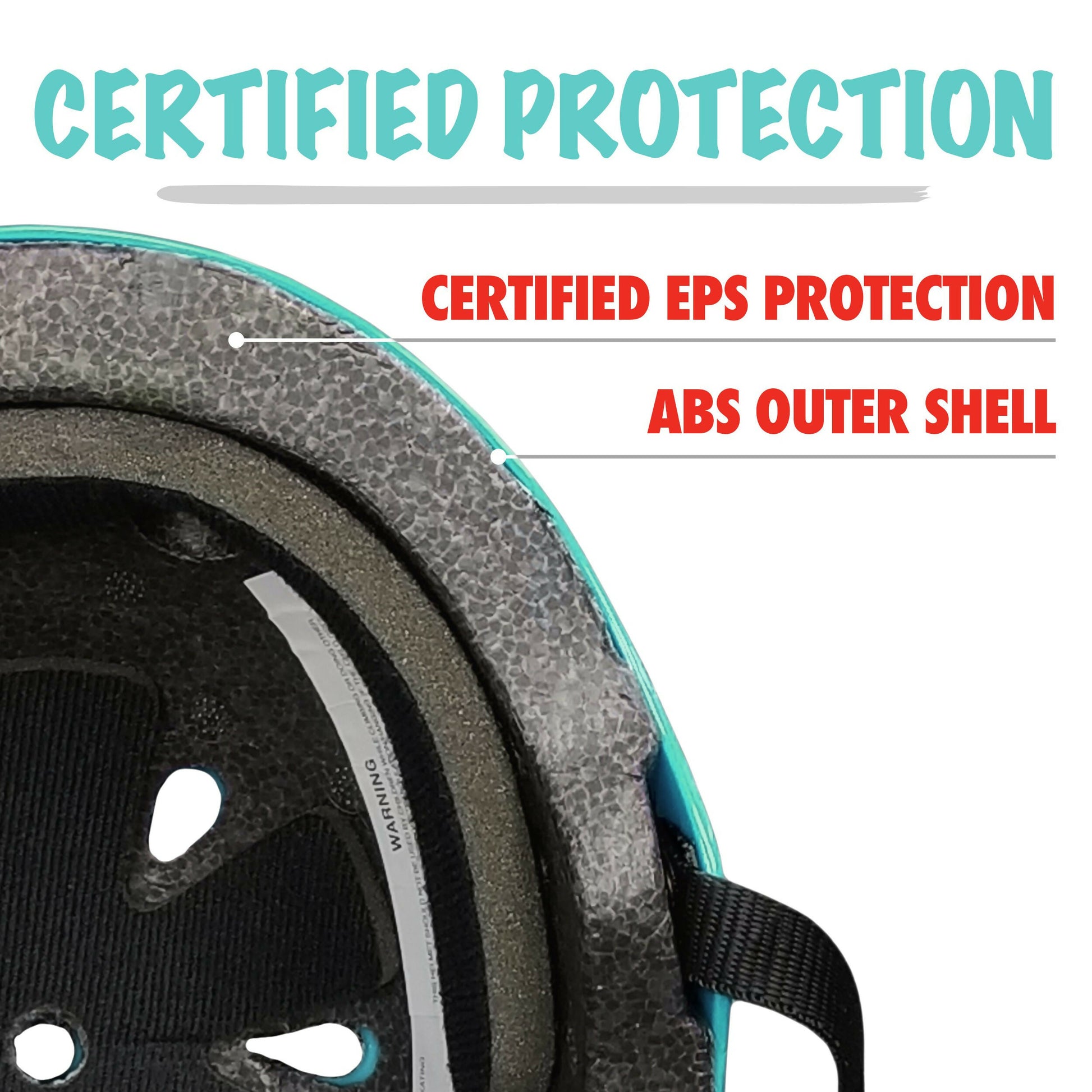 - Complies with U.S. CPSC Safety Standard for Bicycle Helmets for Persons Age 5 and Older and ASTM F-1492 Skate safety standards.