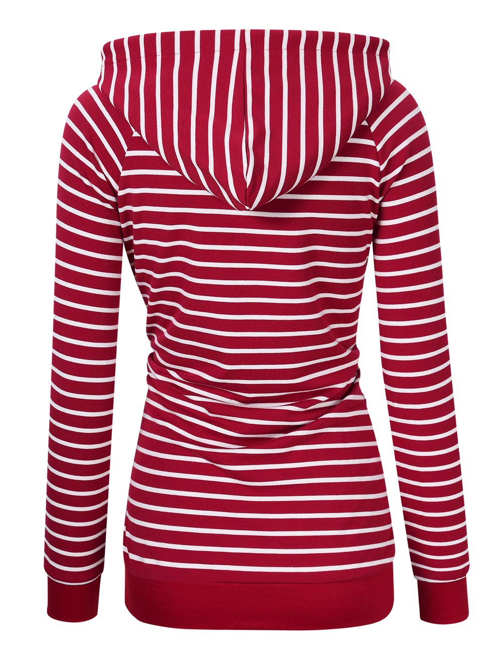 Women's Cowl Neck Pullover Hoodies Long Sleeve Kangaroo Pocket Spliced Striped Hooded Sweatshirts