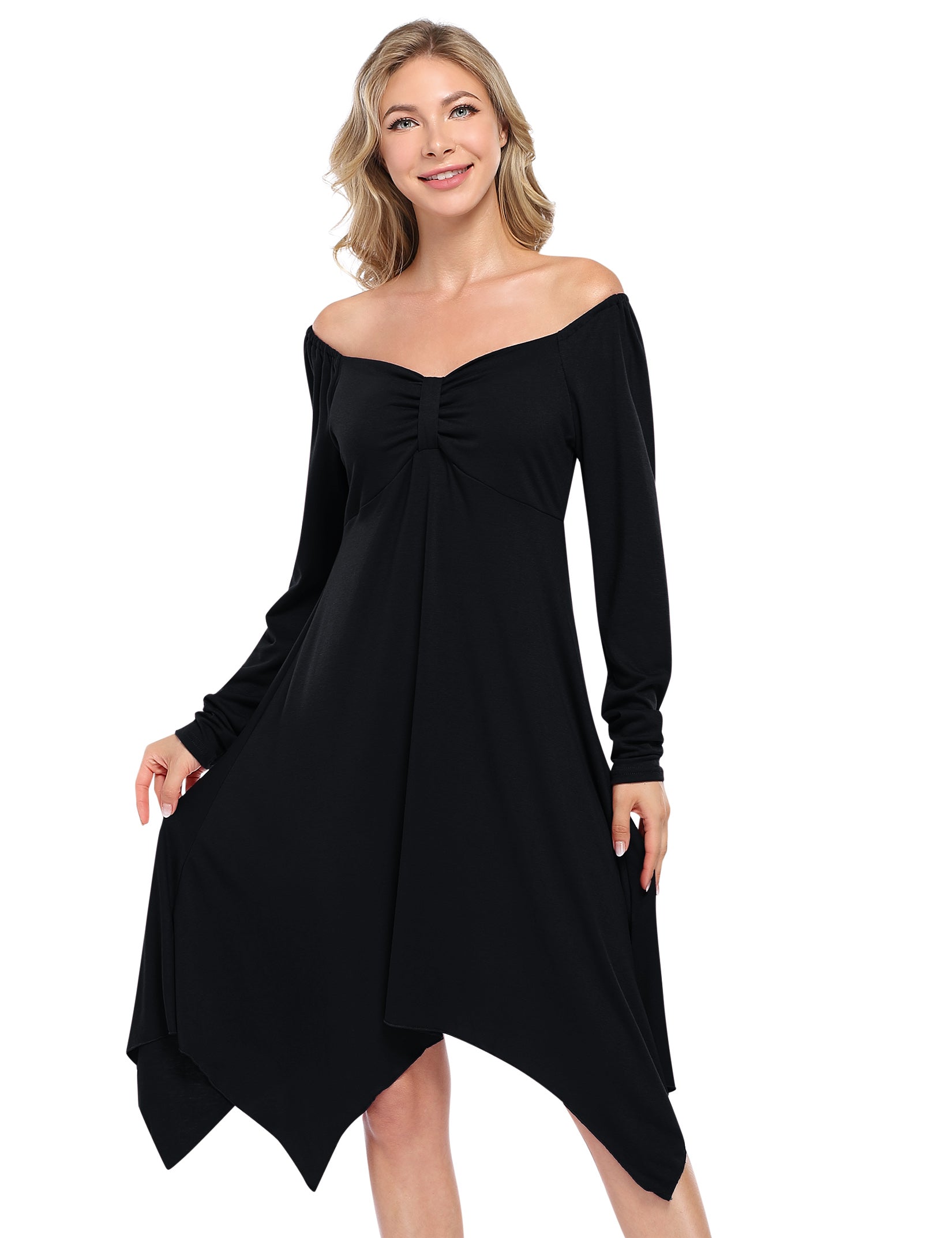 YESFASHION Women's Swing Dress V Neck Ruffle Beach Dress