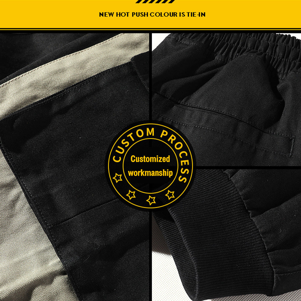YESFASHION Overalls Polyester Multi-pocket Youth Loose Cropped Pants Fashion Casual Trousers