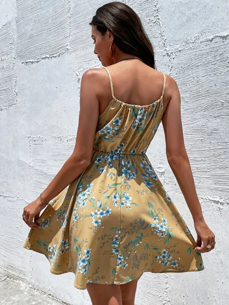 YESFASHION Pullover Print Elastic Waist Sling Short Skirt Women Dress