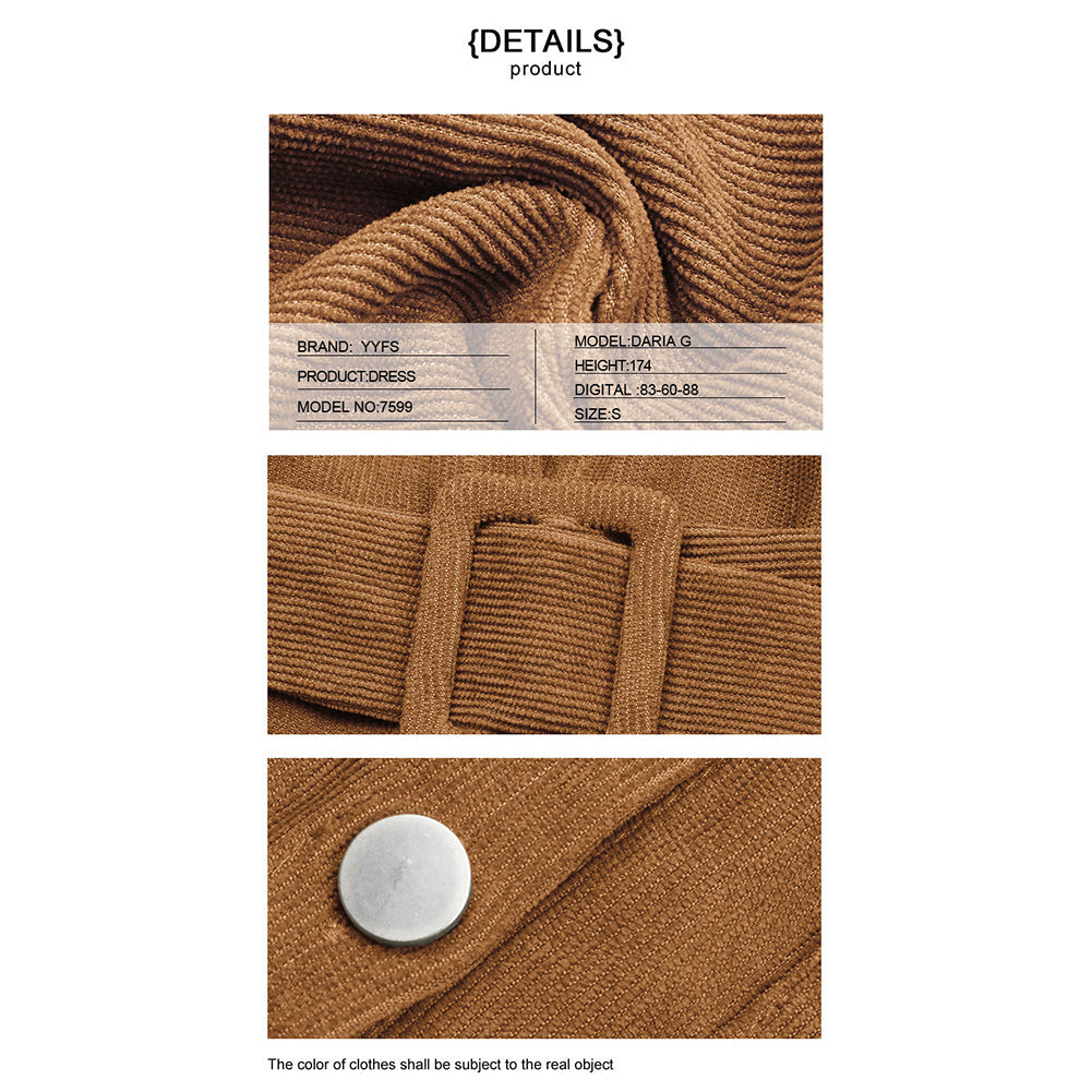 YESFASHION Shirt Style Lapel Long Sleeve Corduroy Dress