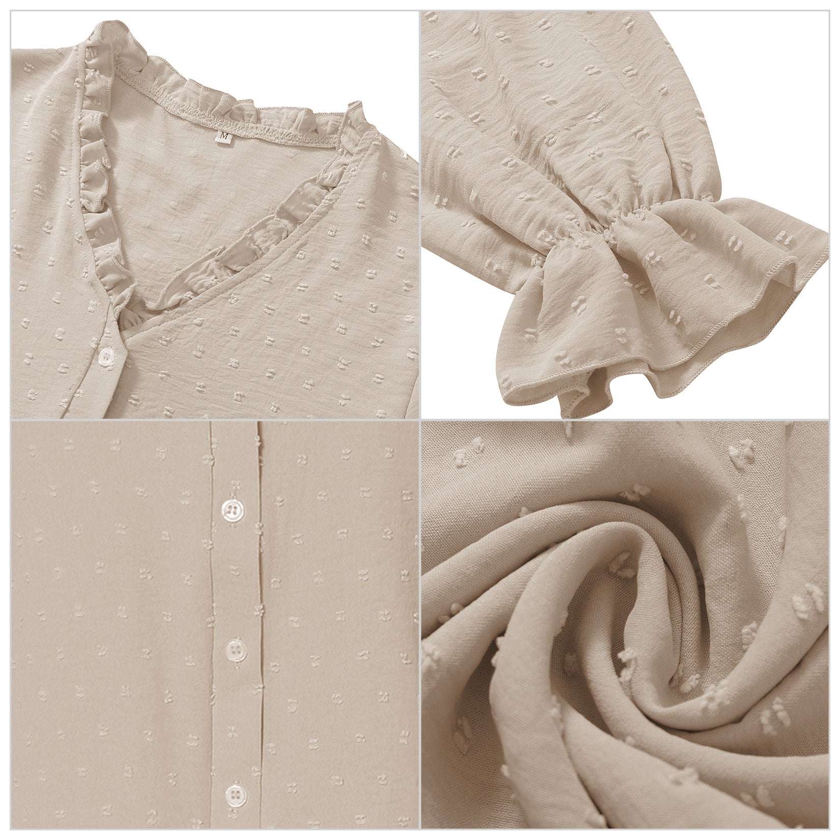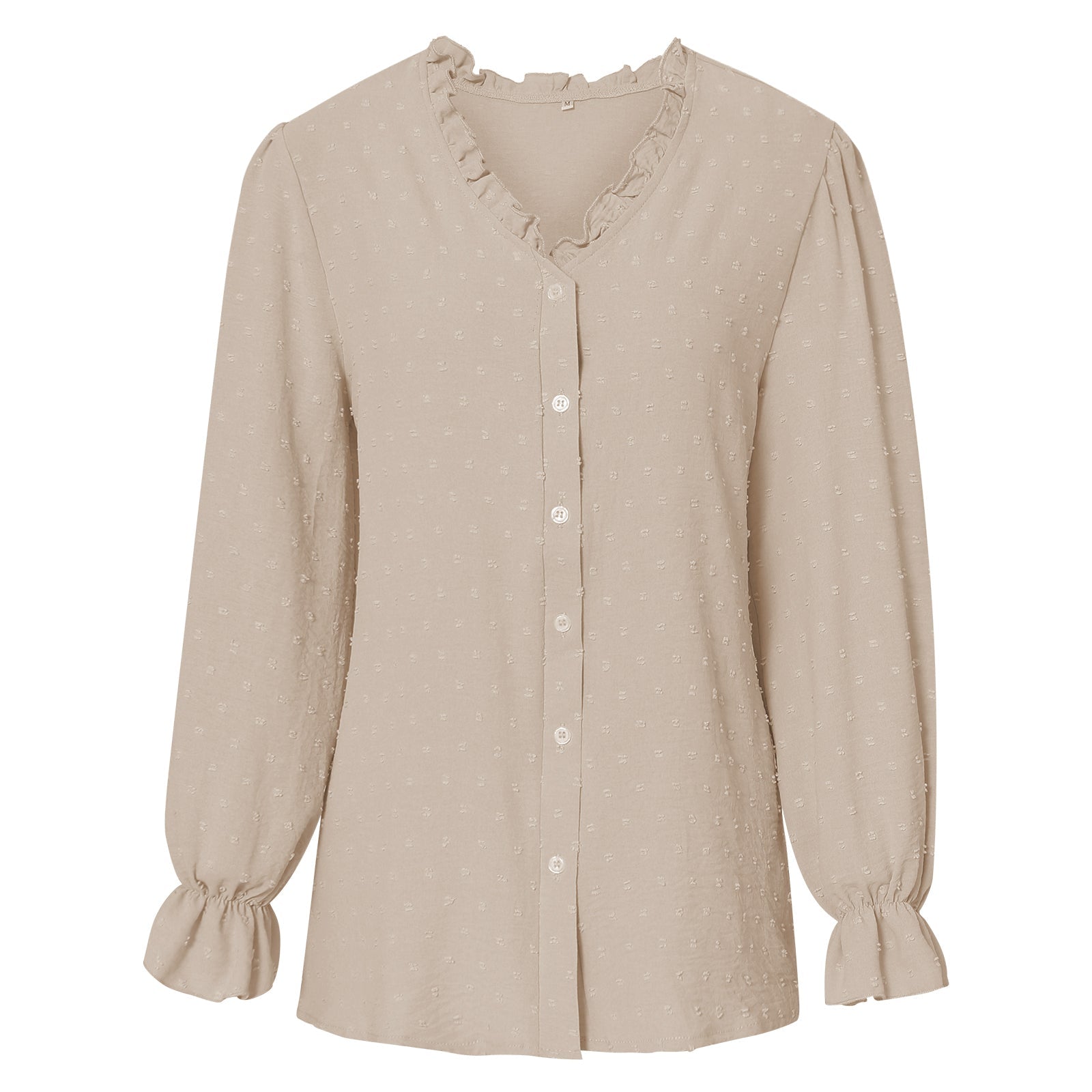 YESFASHION V-neck Shirts Women Fashion Casual Polka Dot Shirts