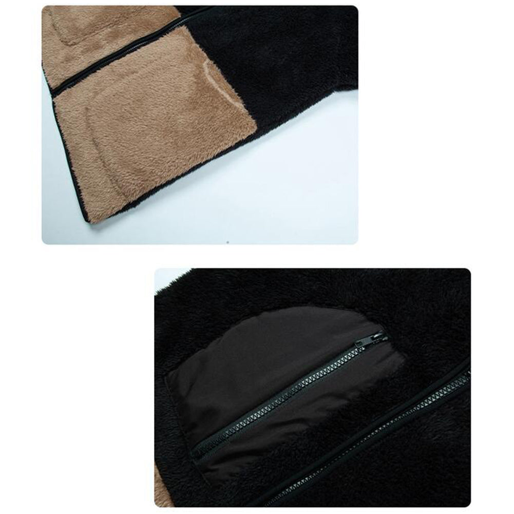 YESFASHION 100% Polyester Women Lapel Long Sleeve Loose Color Block Zipper Thickened Double-faced Fleece Casual Jacket
