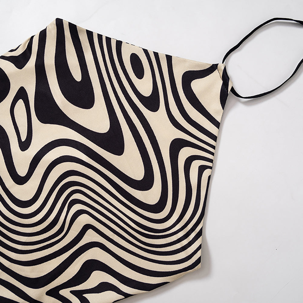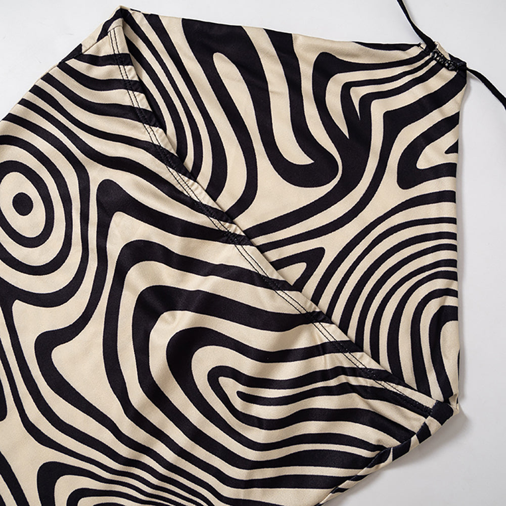 YESFASHION Women Mini Bodycon Dress Contrast Color Print Halter Neck Strapless Sleeveless Backless Slim Fit Sexy Dress
