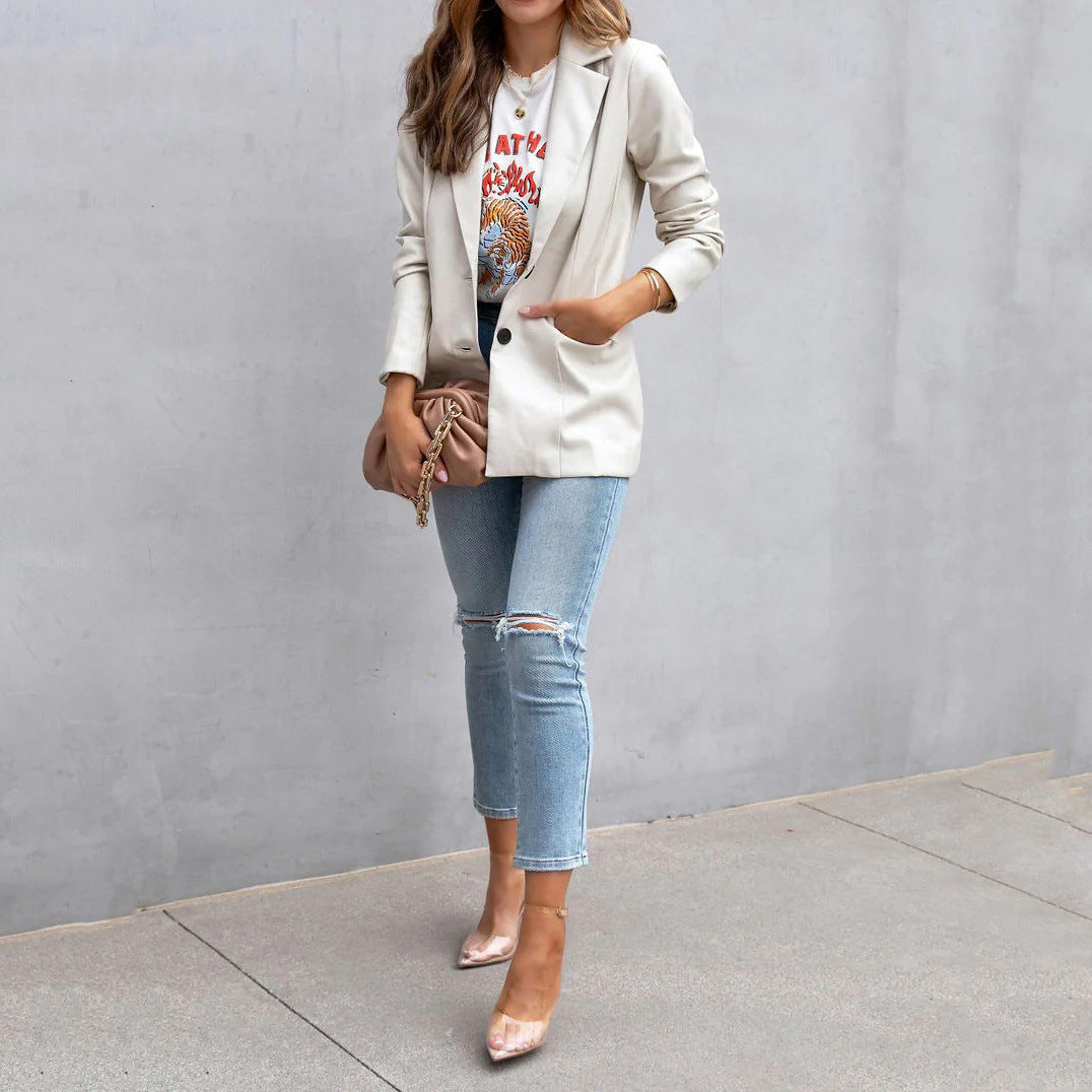 YESFASHION 95% Polyester 5% Cotton 2022 European And American Foreign Trade Autumn And Winter Pu Leather Jacket Women Pocket Casual Leather Suit Solid Color Short Windbreaker Women