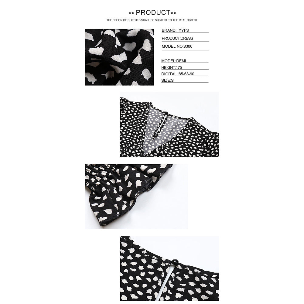 YESFASHION Women Printed V-neck Long Sleeve Black Dress