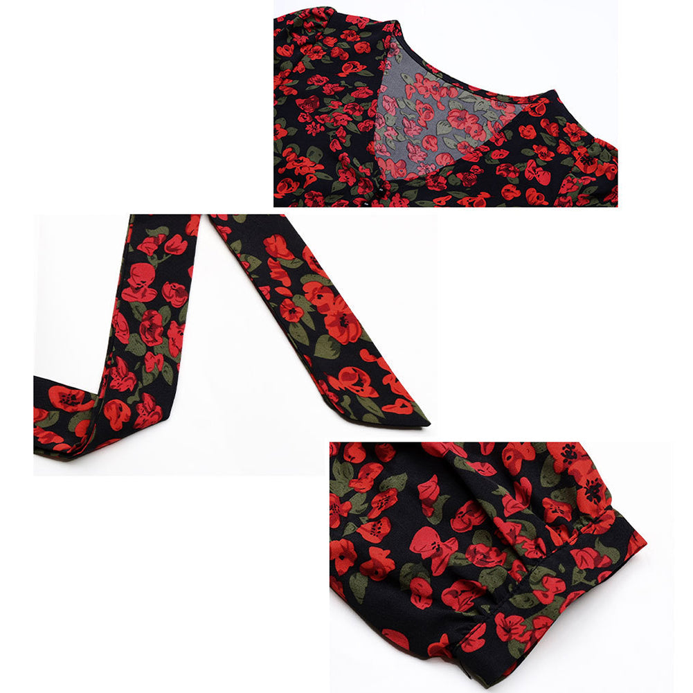 YESFASHION 100% Polyester Fashion European And American Women Spring And Autumn Temperament New Luxury Long-sleeved V-neck Slim Print Dress