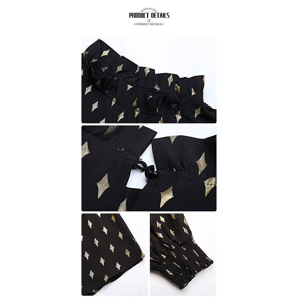 100% Polyester Fashion Women New Half Turtleneck Long Sleeve Bronzing Shirt