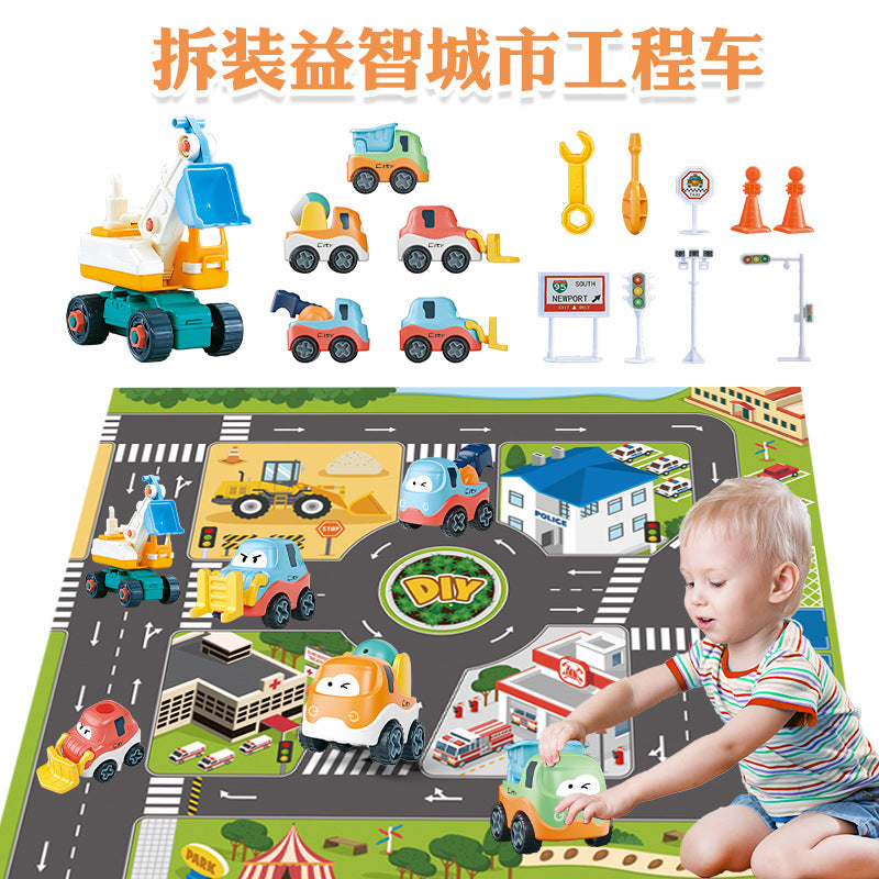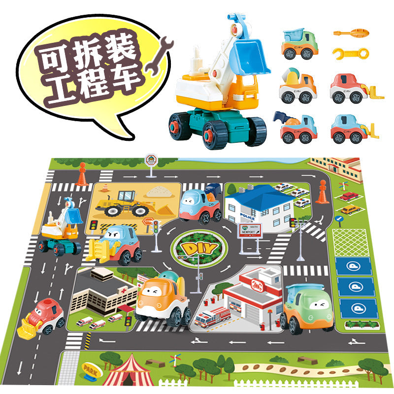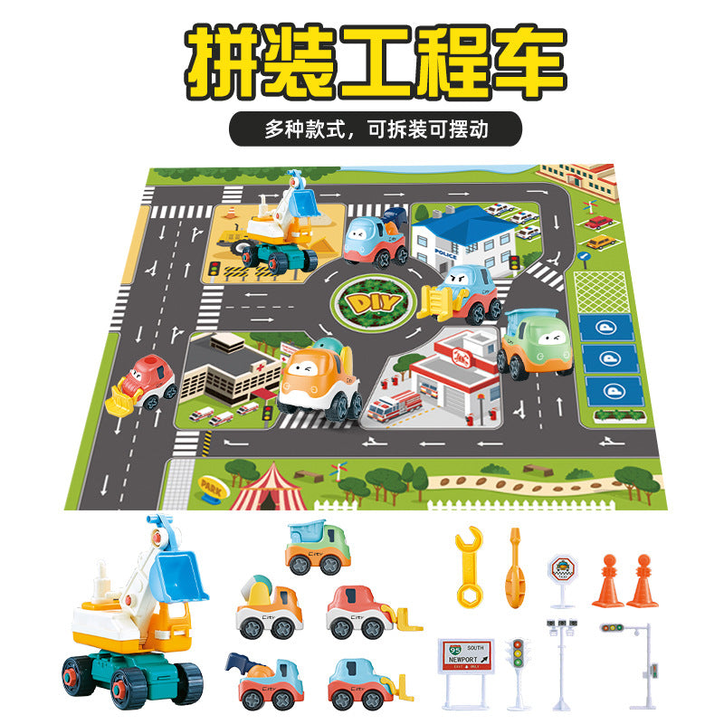1 box Diy Nut Disassembly And Assembly Engineering Vehicle Set, with Crawling Mat and Accessory